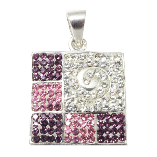 Přívěsek je vyroben ze stříbra. Má čtvercový tvar a je zdoben barevnými zirkony. Tento stříbrný přívěsek je určen pro široké věkové spektrum, od zralých dívek až po zralé ženy. Tento model přívěsku je vhodný pro každodenní nošení i slavnostní příležitosti. Přívěsek je menších rozměrů, se správným řetízkem krásně ozdobí každý dekolt.